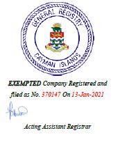 | 5 | The share capital of the Company is US$22,100 divided into 200,000,000 Class A ordinary shares of a par value of US$0.0001 each, 20,000,000 Class B ordinary shares of a par value of US$0.0001 each and 1,000,000 preference shares of a par value of US$0.0001 each. |