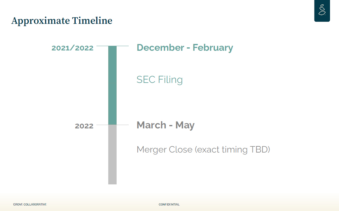 GROVE COLLABORATIVE C ONFIDENTIAL March - May Merger Close (exact timing TBD) 2022 Approximate Timeline December - February 2021 / 2022 SEC Filing