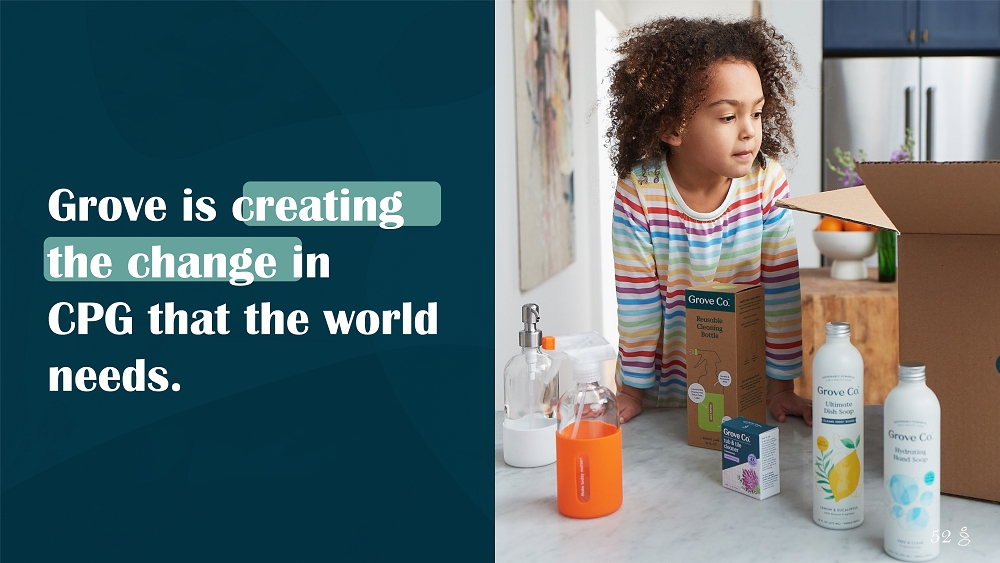 NOTES START FROM HERE AND GROW UP CONTENT BELOW THIS LINE CONTENT BELOW THIS LINE SUBTITLE BELOW THIS LINE TITLE CAN NOT GO ABOVE THIS LINE 52 Grove is creating the change in CPG that the world needs. 52