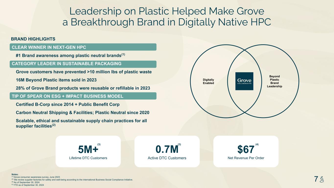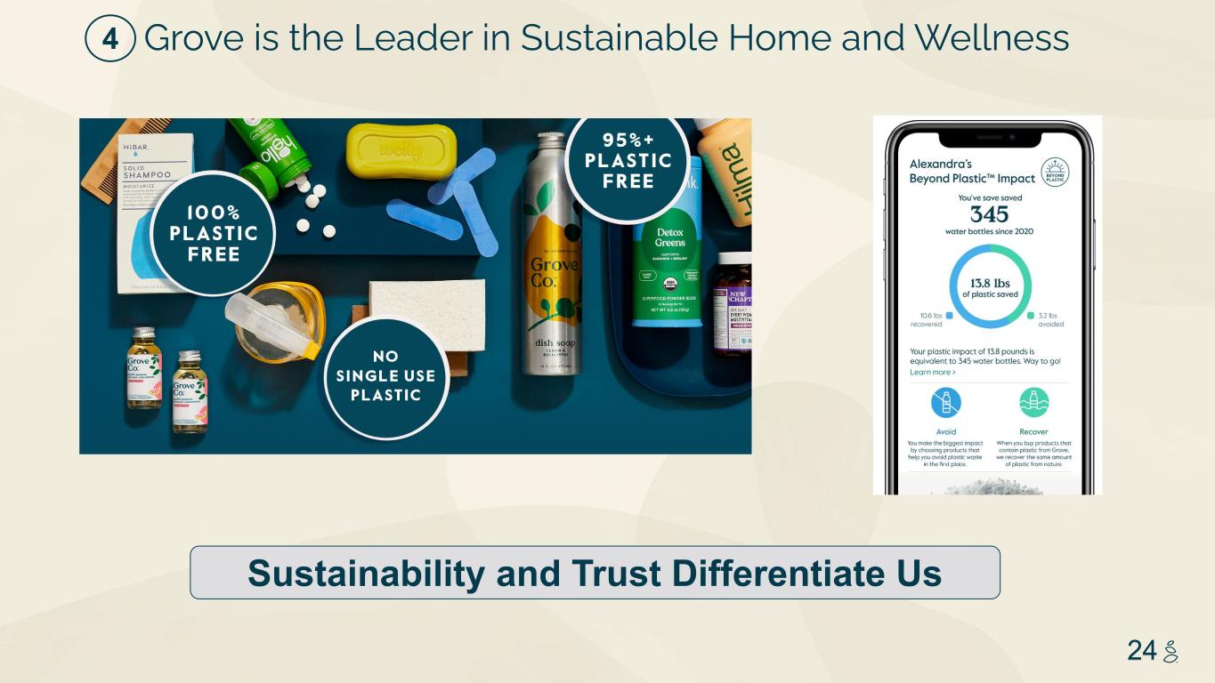 NOTES START FROM HERE AND GROW UP NO CONTENT BELOW THIS LINE CONTENT BELOW THIS LINE SUBTITLE BELOW THIS LINE TITLE CAN NOT GO ABOVE THIS LINE 3 59 76 0 114 88 120 159 144 130 186 128 102 163 157 172 196 200 255 255 255 0 0 0 247 243 228 3 59 76 247 243 228 24 Sustainability and Trust Differentiate Us Grove is the Leader in Sustainable Home and Wellness4
