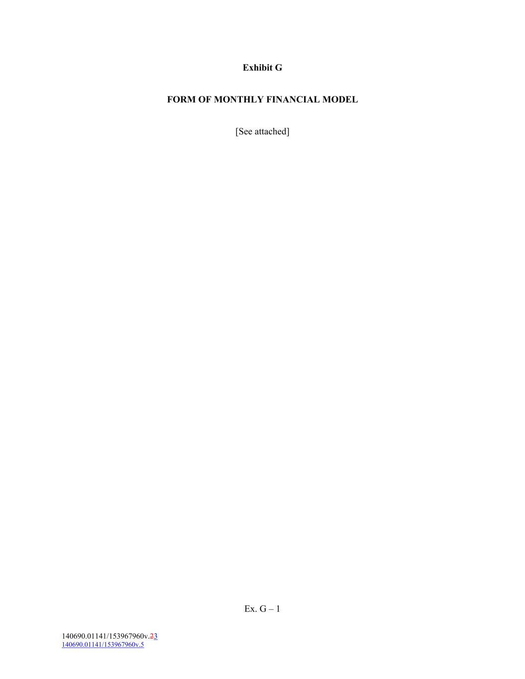 Exhibit G FORM OF MONTHLY FINANCIAL MODEL [See attached] Ex. G – 1 140690.01141/153967960v.23 140690.01141/153967960v.5
