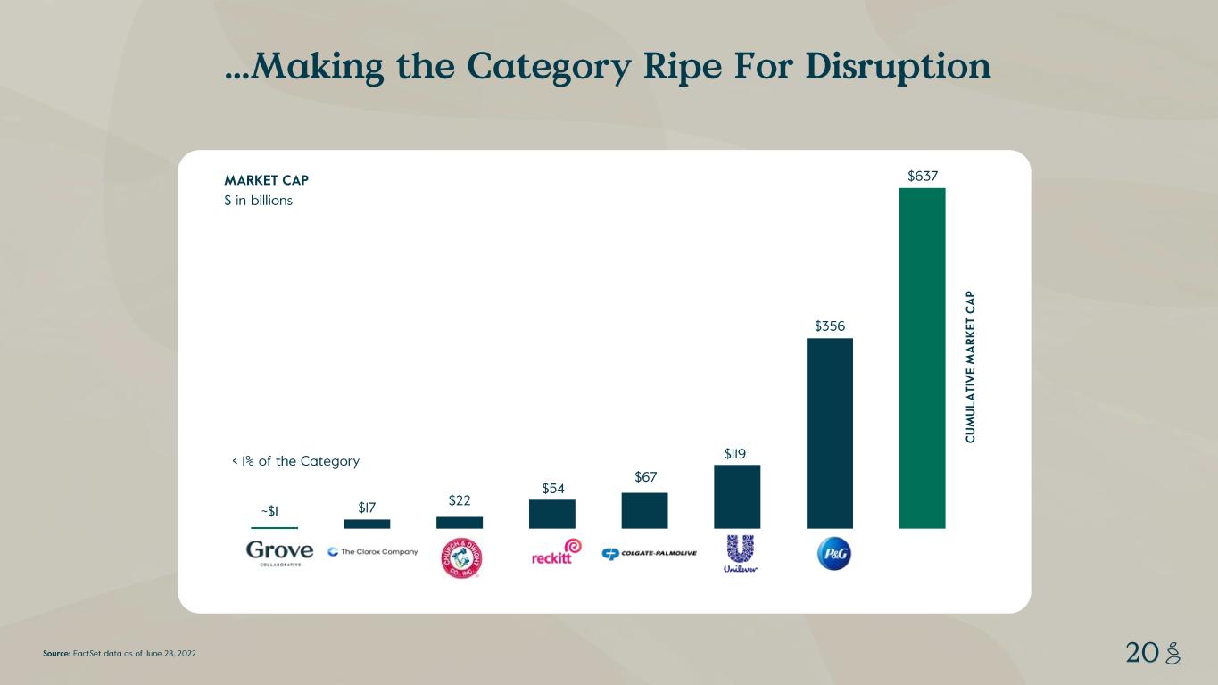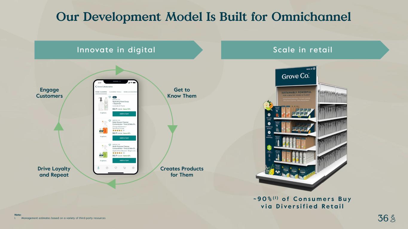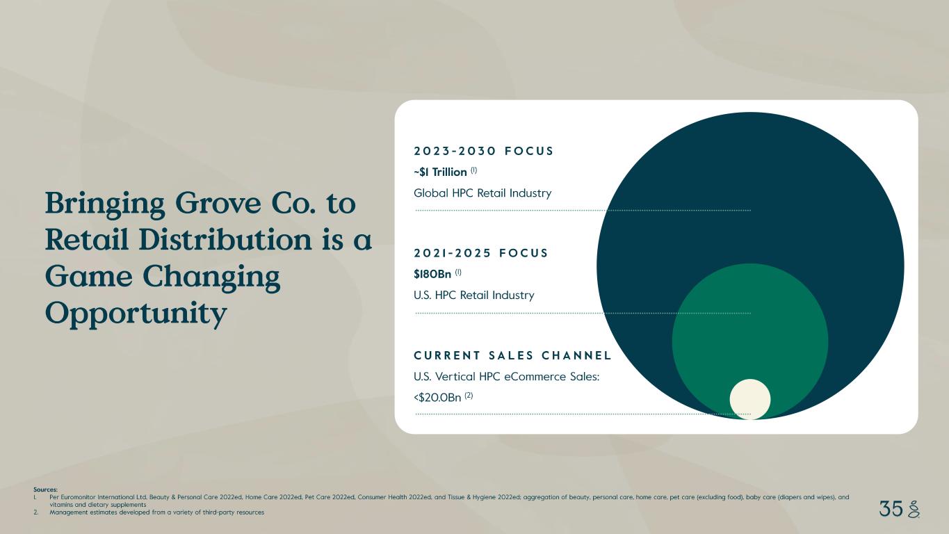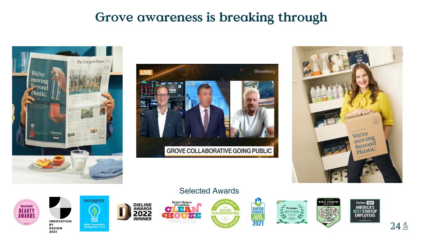 NOTES START FROM HERE AND GROW UP CONTENT BELOW THIS LINE CONTENT BELOW THIS LINE SUBTITLE BELOW THIS LINE TITLE CAN NOT GO ABOVE THIS LINE Basis of Presentation This Presentation (this “Presentation”) is provided for informational purposes only and has been prepared to assist interested parties in making their own evaluation with respect to a potential investment in Grove Collaborative Holdings, Inc. (“Grove”) (the “Potential Transaction”) and for no other purpose. By accepting, reviewing or reading this Presentation, you will be deemed to have agreed to the obligations and restrictions set out below. Without the express prior written consent of Grove, this Presentation and any information contained within it may not be used for any purpose other than your evaluation of Grove. This Presentation supersedes and replaces all previous oral or written communications between the parties hereto relating to the subject matter hereof. This Presentation and any oral statements made in connection with this Presentation do not constitute an offer to sell, or a solicitation of an offer to buy, or a recommendation to purchase, any securities in any jurisdiction, nor shall there be any sale, issuance or transfer of any securities in any jurisdiction where, or to any person to whom, such offer, solicitation or sale may be unlawful under the laws of such jurisdiction. This Presentation does not constitute either advice or a recommendation regarding any securities. Any offer to sell securities will be made only pursuant to a definitive Subscription Agreement and will be made in reliance on an exemption from registration under the Securities Act of 1933, as amended, for offers and sales of securities that do not involve a public offering. Grove reserves the right to withdraw or amend for any reason any offering and to reject any Subscription Agreement for any reason. The communication of this Presentation is restricted by law; it is not intended for distribution to, or use by any person in, any jurisdiction where such distribution or use would be contrary to local law or regulation. No representations or warranties, express or implied are given in, or in respect of, this Presentation. Industry and market data used in this Presentation have been obtained from third-party industry publications and sources as well as from research reports prepared for other purposes. Grove has not independently verified the data obtained from these sources and cannot assure you of the data’s accuracy or completeness. This data is subject to change. Recipients of this Presentation are not to construe its contents, or any prior or subsequent communications from or with Grove or its respective affiliates or representatives as investment, legal or tax advice. In addition, this Presentation does not purport to be all-inclusive or to contain all of the information that may be required to make a full analysis of Grove or the Potential Transaction. Recipients of this Presentation should each make their own evaluation of Grove and of the relevance and adequacy of the information and should make such other investigations as they deem necessary. To the fullest extent permitted by law, in no circumstances will Grove or any of its respective stockholders, affiliates, representatives, partners, directors, officers, employees, advisers or agents be responsible or liable for any direct, indirect, or consequential loss or loss of profit arising from the use of this presentation, its contents, its omissions, reliance on the information contained within it or on opinions communicated in relation thereto or otherwise arising in connection therewith. Forward-Looking Statements Certain statements included in this Presentation are not historical facts but are forward-looking statements for purposes of the safe harbor provisions under the United States Private Securities Litigation Reform Act of 1995. Forward-looking statements generally are accompanied by words such as “believe,” “may,” “will,” “estimate,” “continue,” “anticipate,” “intend,” “expect,” “should,” “would,” “plan,” “predict,” “potential,” “seem,” “seek,” “future,” “outlook,” and similar expressions that predict or indicate future events or trends or that are not statements of historical matters, but the absence of these words does not mean that a statement is not forward- looking. These forward-looking statements include, but are not limited to, (1) statements regarding estimates and forecasts of other financial and performance metrics and projections of market opportunity; (2) references with respect to the anticipated benefits of the Potential Transaction and the projected future financial performance of Grove and Grove’s operating companies; (3) changes in the market for Grove’s products, and expansion plans and opportunities; (4) anticipated customer retention; (5) the sources and uses of cash of the Potential Transaction; and (6) expectations related to the terms and timing of the Potential Transaction. These statements are based on various assumptions, whether or not identified in this Presentation, and on the current expectations of Grove’s management and are not predictions of actual performance. These forward-looking statements are provided for illustrative purposes only and are not intended to serve as, and must not be relied on by any investor as, a guarantee, an assurance, a prediction or a definitive statement of fact or probability. Actual events and circumstances are difficult or impossible to predict and will differ from assumptions. Many actual events and circumstances are beyond the control of Grove. These forward-looking statements are subject to a number of risks and uncertainties, including: changes in domestic and foreign business, market, financial, political and legal conditions; failure to realize the anticipated benefits of the Potential Transaction; risks relating to the 