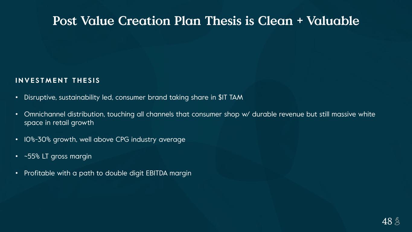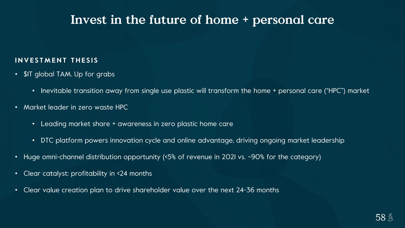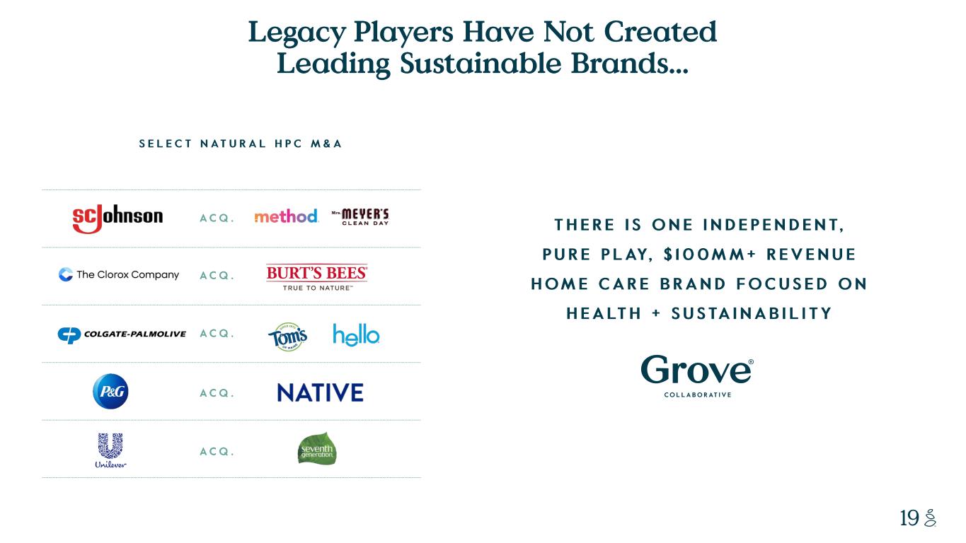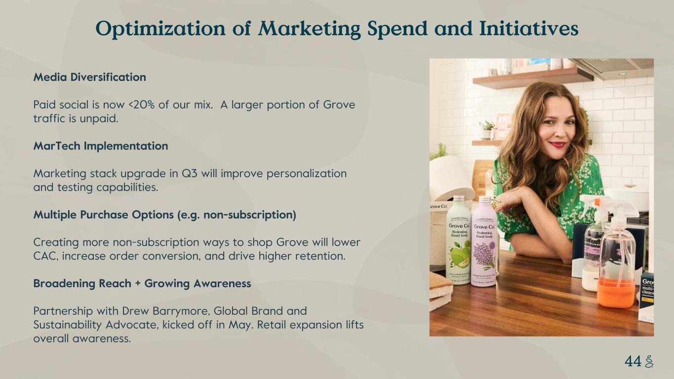 NOTES START FROM HERE AND GROW UP CONTENT BELOW THIS LINE CONTENT BELOW THIS LINE SUBTITLE BELOW THIS LINE TITLE CAN NOT GO ABOVE THIS LINE Basis of Presentation This Presentation (this “Presentation”) is provided for informational purposes only and has been prepared to assist interested parties in making their own evaluation with respect to a potential investment in Grove Collaborative Holdings, Inc. (“Grove”) (the “Potential Transaction”) and for no other purpose. By accepting, reviewing or reading this Presentation, you will be deemed to have agreed to the obligations and restrictions set out below. Without the express prior written consent of Grove, this Presentation and any information contained within it may not be used for any purpose other than your evaluation of Grove. This Presentation supersedes and replaces all previous oral or written communications between the parties hereto relating to the subject matter hereof. This Presentation and any oral statements made in connection with this Presentation do not constitute an offer to sell, or a solicitation of an offer to buy, or a recommendation to purchase, any securities in any jurisdiction, nor shall there be any sale, issuance or transfer of any securities in any jurisdiction where, or to any person to whom, such offer, solicitation or sale may be unlawful under the laws of such jurisdiction. This Presentation does not constitute either advice or a recommendation regarding any securities. Any offer to sell securities will be made only pursuant to a definitive Subscription Agreement and will be made in reliance on an exemption from registration under the Securities Act of 1933, as amended, for offers and sales of securities that do not involve a public offering. Grove reserves the right to withdraw or amend for any reason any offering and to reject any Subscription Agreement for any reason. The communication of this Presentation is restricted by law; it is not intended for distribution to, or use by any person in, any jurisdiction where such distribution or use would be contrary to local law or regulation. No representations or warranties, express or implied are given in, or in respect of, this Presentation. Industry and market data used in this Presentation have been obtained from third-party industry publications and sources as well as from research reports prepared for other purposes. Grove has not independently verified the data obtained from these sources and cannot assure you of the data’s accuracy or completeness. This data is subject to change. Recipients of this Presentation are not to construe its contents, or any prior or subsequent communications from or with Grove or its respective affiliates or representatives as investment, legal or tax advice. In addition, this Presentation does not purport to be all-inclusive or to contain all of the information that may be required to make a full analysis of Grove or the Potential Transaction. Recipients of this Presentation should each make their own evaluation of Grove and of the relevance and adequacy of the information and should make such other investigations as they deem necessary. To the fullest extent permitted by law, in no circumstances will Grove or any of its respective stockholders, affiliates, representatives, partners, directors, officers, employees, advisers or agents be responsible or liable for any direct, indirect, or consequential loss or loss of profit arising from the use of this presentation, its contents, its omissions, reliance on the information contained within it or on opinions communicated in relation thereto or otherwise arising in connection therewith. Forward-Looking Statements Certain statements included in this Presentation are not historical facts but are forward-looking statements for purposes of the safe harbor provisions under the United States Private Securities Litigation Reform Act of 1995. Forward-looking statements generally are accompanied by words such as “believe,” “may,” “will,” “estimate,” “continue,” “anticipate,” “intend,” “expect,” “should,” “would,” “plan,” “predict,” “potential,” “seem,” “seek,” “future,” “outlook,” and similar expressions that predict or indicate future events or trends or that are not statements of historical matters, but the absence of these words does not mean that a statement is not forward- looking. These forward-looking statements include, but are not limited to, (1) statements regarding estimates and forecasts of other financial and performance metrics and projections of market opportunity; (2) references with respect to the anticipated benefits of the Potential Transaction and the projected future financial performance of Grove and Grove’s operating companies; (3) changes in the market for Grove’s products, and expansion plans and opportunities; (4) anticipated customer retention; (5) the sources and uses of cash of the Potential Transaction; and (6) expectations related to the terms and timing of the Potential Transaction. These statements are based on various assumptions, whether or not identified in this Presentation, and on the current expectations of Grove’s management and are not predictions of actual performance. These forward-looking statements are provided for illustrative purposes only and are not intended to serve as, and must not be relied on by any investor as, a guarantee, an assurance, a prediction or a definitive statement of fact or probability. Actual events and circumstances are difficult or impossible to predict and will differ from assumptions. Many actual events and circumstances are beyond the control of Grove. These forward-looking statements are subject to a number of risks and uncertainties, including: changes in domestic and foreign business, market, financial, political and legal conditions; failure to realize the anticipated benefits of the Potential Transaction; risks relating to the 