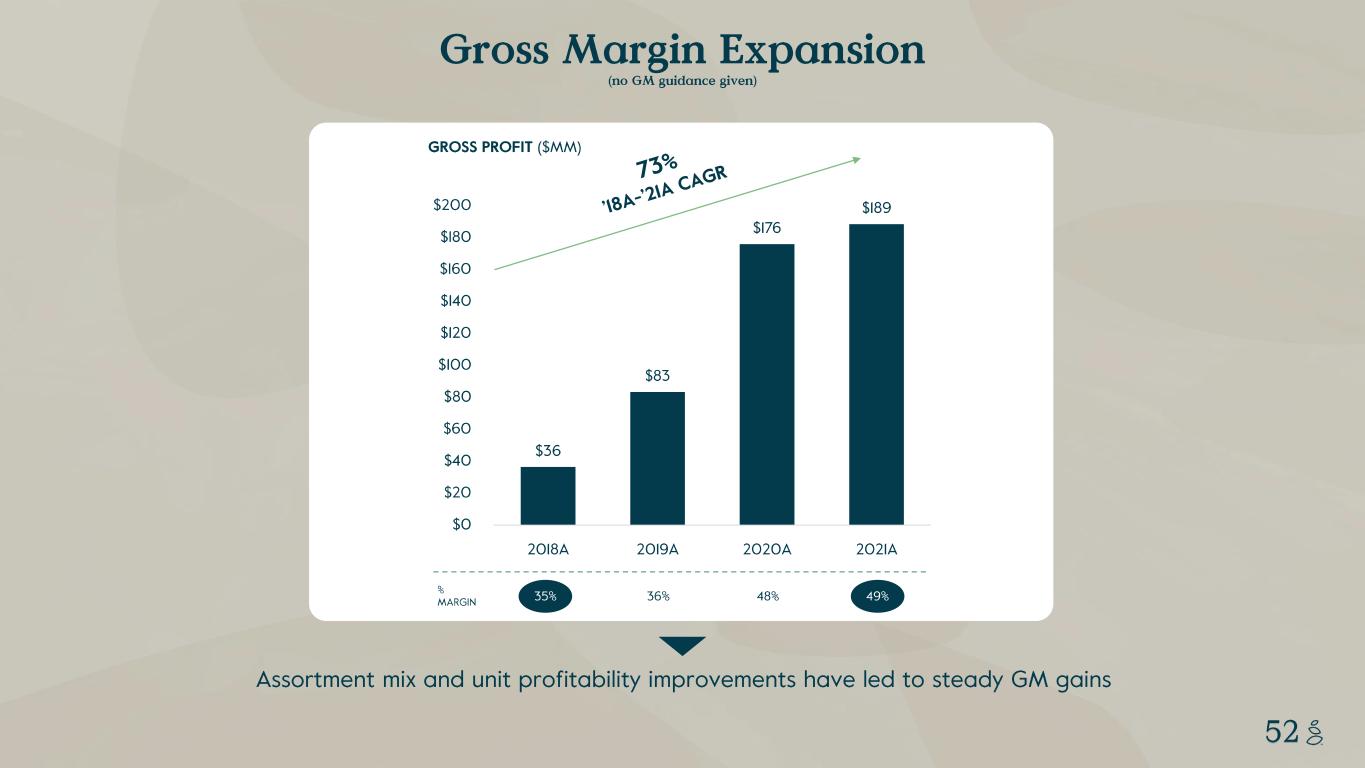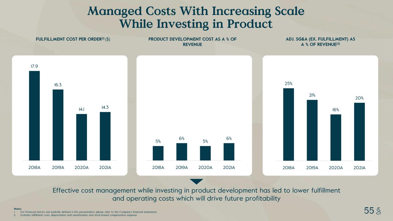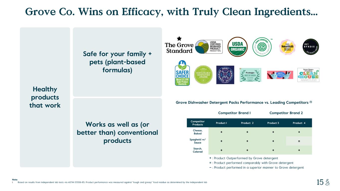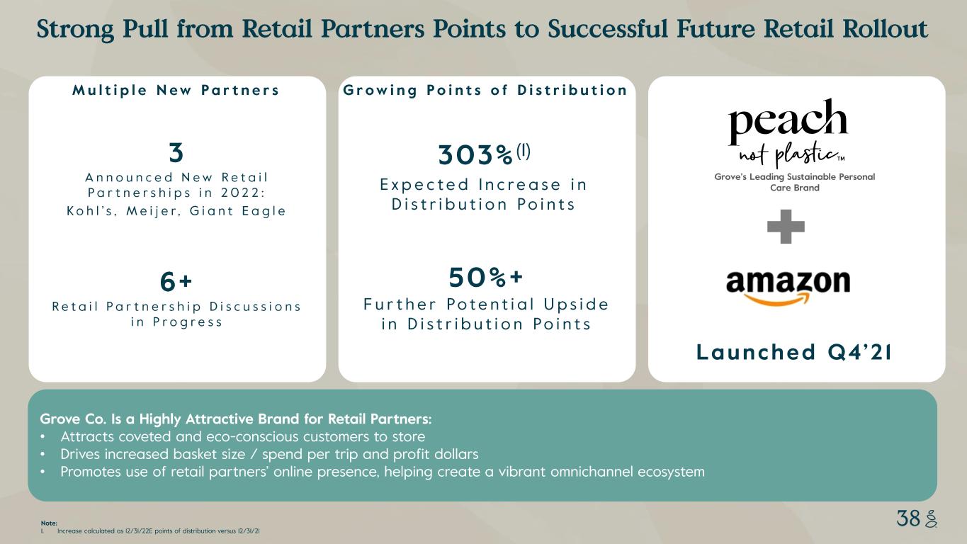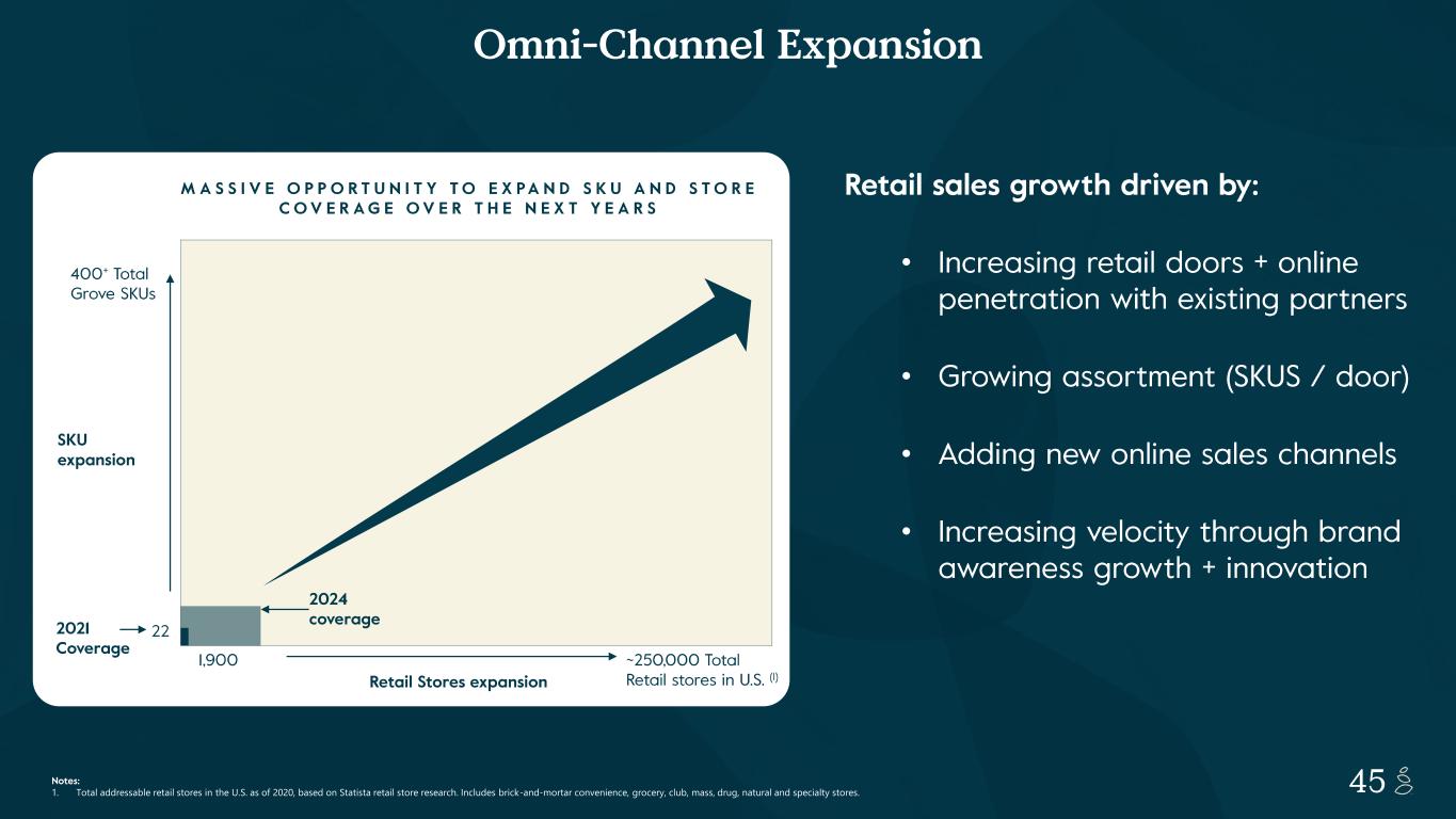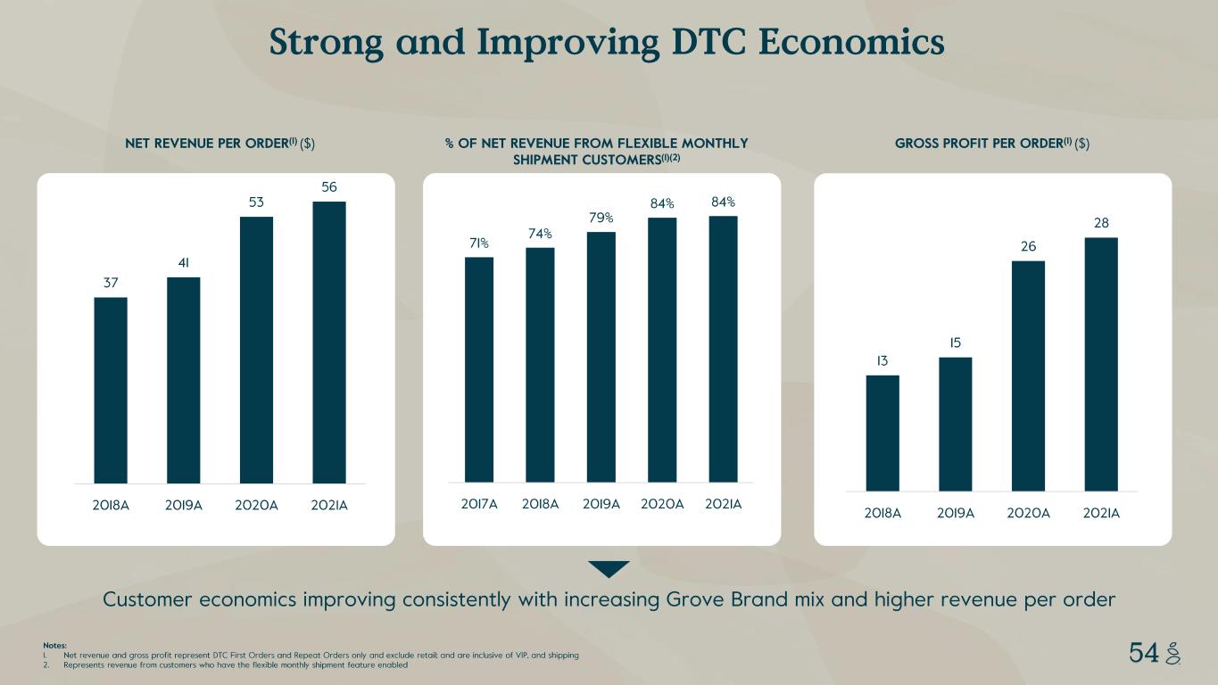 NOTES START FROM HERE AND GROW UP CONTENT BELOW THIS LINE CONTENT BELOW THIS LINE SUBTITLE BELOW THIS LINE TITLE CAN NOT GO ABOVE THIS LINE Trademarks Grove owns or has rights to various trademarks, service marks and trade names that it uses in connection with the operation of its business. This Presentation may also contain trademarks, service marks, trade names and copyrights of third parties, which are the property of their respective owners. The use or display of third parties’ trademarks, service marks, trade names or products in this Presentation is not intended to, and does not imply, a relationship with Grove, or an endorsement or sponsorship by or of Grove. Solely for convenience, the trademarks, service marks, trade names and copyrights referred to in this Presentation may appear without the TM, SM, ® or © symbols, but such references are not intended to indicate, in any way, that Grove will not assert, to the fullest extent under applicable law, its rights or the right of the applicable licensor to these trademarks, service marks, trade names and copyrights. Use of Projections This Presentation contains projected financial information with respect to Grove, namely revenue and gross margin, gross product margin, Grove brands revenue share, gross revenue share by brand, gross profit, adjusted EBITDA, adjusted EBITDA margin, fulfillment cost, operating expenses, advertising spend. Such projected financial information constitutes forward-looking information, and is for illustrative purposes only and should not be relied upon as necessarily being indicative of future results. The projections, estimates and targets in this Presentation are forward-looking statements that are based on assumptions that are inherently subject to significant uncertainties and contingencies, many of which are beyond Grove’s control. See “Forward-Looking Statements” above. While all projections, estimates and targets are necessarily speculative, Grove believes that the preparat ion of prospective financial information involves increasingly higher levels of uncertainty the further out the projection, estimate or target extends from the date of preparation. The assumptions and estimates underlying the projected, expected or target results are inherently uncertain and are subject to a wide variety of significant business, economic, regulatory, competitive and other risks and uncertainties that could cause actual results to differ materially from those contained in such projections, estimates and targets. The inclusion of projections, estimates and targets in this Presentation should not be regarded as an indication that Grove, or its representatives, considered or consider the financial projections, estimates and targets to be a reliable prediction of future events. The independent registered public accounting firm of Grove has not audited, reviewed, compiled or performed any procedures with respect to the projections for the purpose of their inclusion in this Presentation, and accordingly, neither of them expressed an opinion or provided any other form of assurance with respect thereto for the purpose of this Presentation. Financial Information; Non-GAAP Financial Measures The Grove financial information and data for the fiscal years ended December 31, 2019, 2020 and 2021 included herein are audited in accordance with Association of International Certified Professional Accountants (AICPA) auditing standards. Some of the financial information and data contained in this Presentation, such as gross product margin, contribution profit and adjusted EBITDA, have not been prepared in accordance with United States generally accepted accounting principles (“GAAP”). These non-GAAP measures, and other measures that are calculated using such non-GAAP measures, are an addition to, and not a substitute for or superior to, measures of financial performance prepared in accordance with GAAP and should not be considered as an alternative to revenue, operating income, profit before tax, net income or any other performance measures derived in accordance with GAAP. A reconciliation of adjusted EBITDA to Net Income is provided at the end of this presentation. A reconciliation of the projected non-GAAP financial measures has not been provided and is unable to be provided without unreasonable effort because certain items excluded from these non-GAAP financial measures such as charges related to stock-based compensation expenses and related tax effects, including non-recurring income tax adjustments, cannot be reasonably calculated or predicted at this time. Grove believes these non-GAAP measures of financial results, including on a forward-looking basis, provide useful information to management and investors regarding certain financial and business trends relating to Grove’s financial condition and results of operations. Grove’s management uses these non-GAAP measures for trend analyses and for budgeting and planning purposes. Grove believes that the use of these non-GAAP financial measures provide an additional tool for investors to use in evaluating projected operating results and trends in and in comparing Grove’s financial measures with other similar companies, many of which present similar non-GAAP financial measures to investors. However, there are a number of limitations related to the use of these non-GAAP measures and their nearest GAAP equivalents. For example, other companies may calculate non-GAAP measures differently, or may use other measures to calculate their financial performance, and therefore Grove’s non-GAAP measures may not be directly comparable to similarly titled measures of other companies. See the footnotes on the slides where these measures are discussed and the Appendix for definitions of these non-GAAP financial measures and reconciliations of these non-GAAP financial measures to the most directly comparable GAAP measures. Important Information for Investors and Stockholders This 