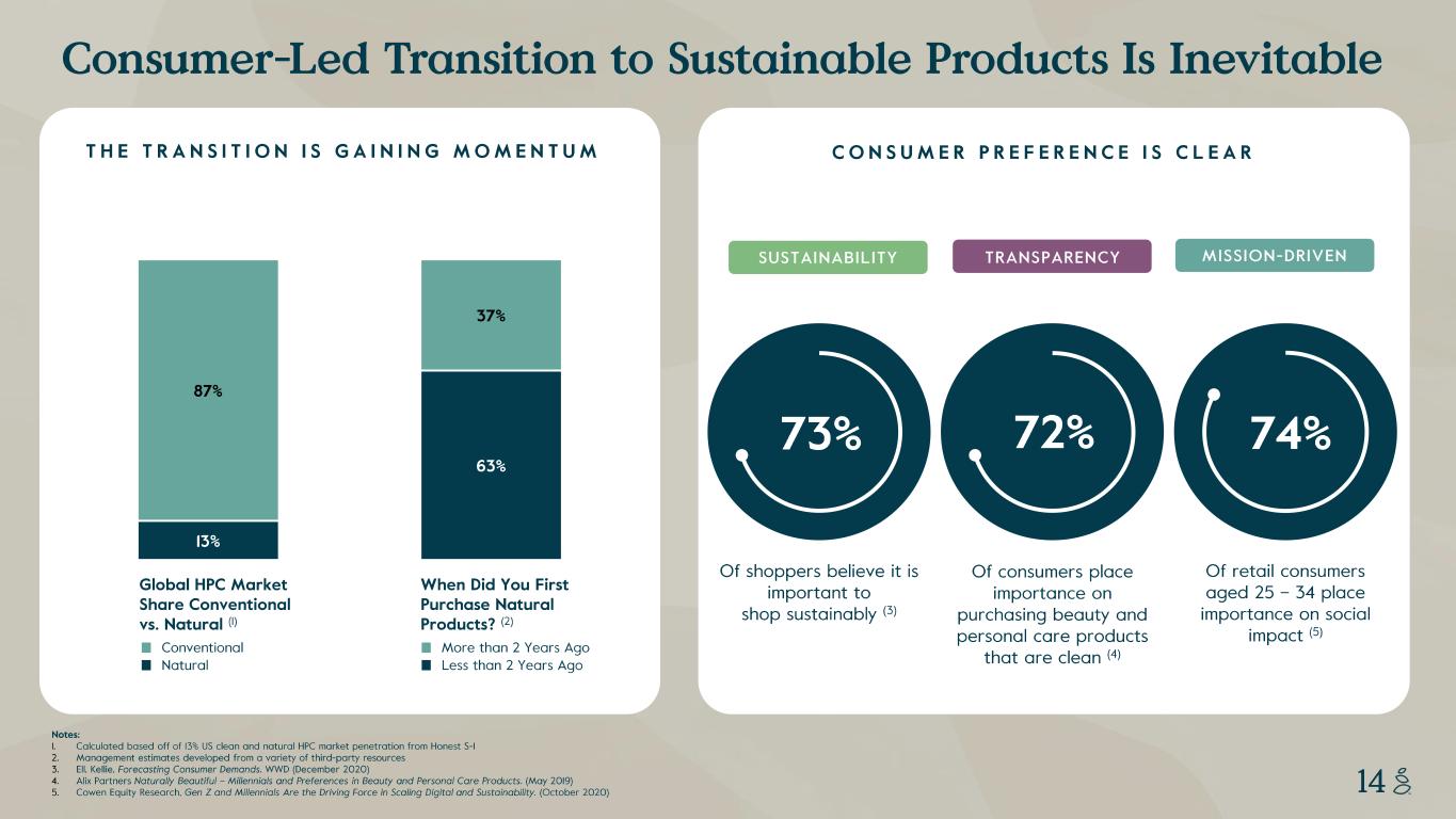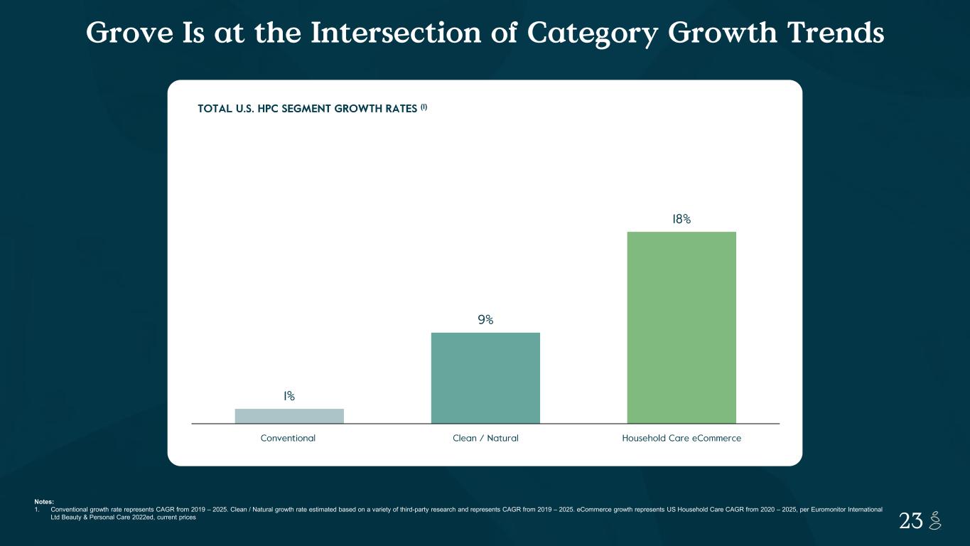 NOTES START FROM HERE AND GROW UP CONTENT BELOW THIS LINE CONTENT BELOW THIS LINE SUBTITLE BELOW THIS LINE TITLE CAN NOT GO ABOVE THIS LINE Notes: 1. Conventional growth rate represents CAGR from 2019 – 2025. Clean / Natural growth rate estimated based on a variety of third-party research and represents CAGR from 2019 – 2025. eCommerce growth represents US Household Care CAGR from 2020 – 2025, per Euromonitor International Ltd Beauty & Personal Care 2022ed, current prices