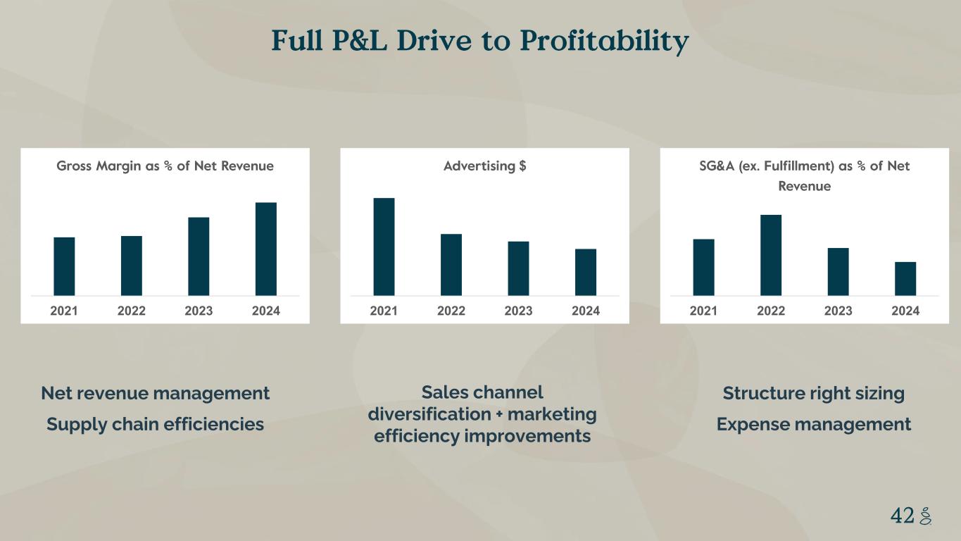 NOTES START FROM HERE AND GROW UP CONTENT BELOW THIS LINE CONTENT BELOW THIS LINE SUBTITLE BELOW THIS LINE TITLE CAN NOT GO ABOVE THIS LINE Net revenue management Supply chain efficiencies 2021 2022 2023 2024 2021 2022 2023 2024 Sales channel diversification + marketing efficiency improvements Structure right sizing Expense management 2021 2022 2023 2024 $