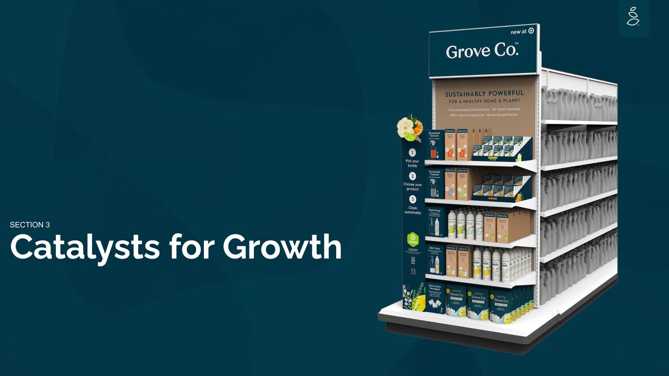 NOTES START FROM HERE AND GROW UP NO CONTENT BELOW THIS LINE CONTENT BELOW THIS LINE SUBTITLE BELOW THIS LINE TITLE CAN NOT GO ABOVE THIS LINE 3 59 76 0 114 88 120 159 144 130 186 128 102 163 157 172 196 200 255 255 255 0 0 0 247 243 228 3 59 76 247 243 228 40 Company Timeline 2016 Changed name to Grove + focus on brand building 1H 2021 Launched Beyond Plastic collection at Target in 100% of U.S. doors 2012 Company founded as ePantry, based on selling natural 3P products 2014 B Corp Certification achieved 2015 Launched our first Grove Brand product 2017-2020 Scaled 3 FCs 2020 100% Plastic neutral, Carbon neutral for Scope I + II June 2022 Grove Public Listing on NYSE 2018 $100MM+ in sales 2021 Achieves CarbonNeutral® certified company Mar 2023 Grove Wellness Launch