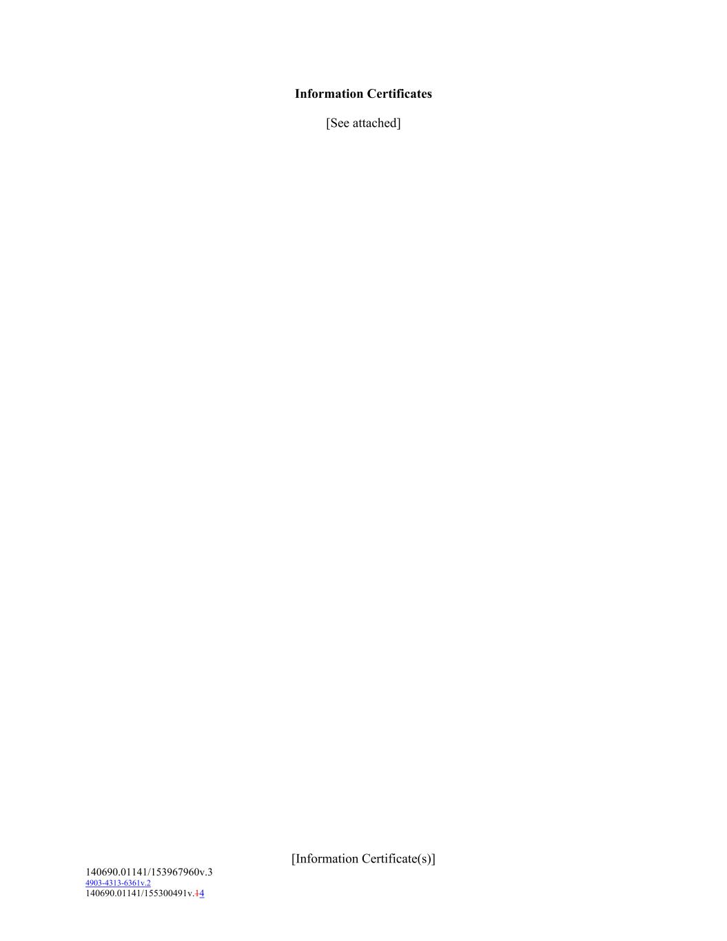 Information Certificates [See attached] [Information Certificate(s)] 140690.01141/153967960v.3 4903-4313-6361v.2 140690.01141/155300491v.14