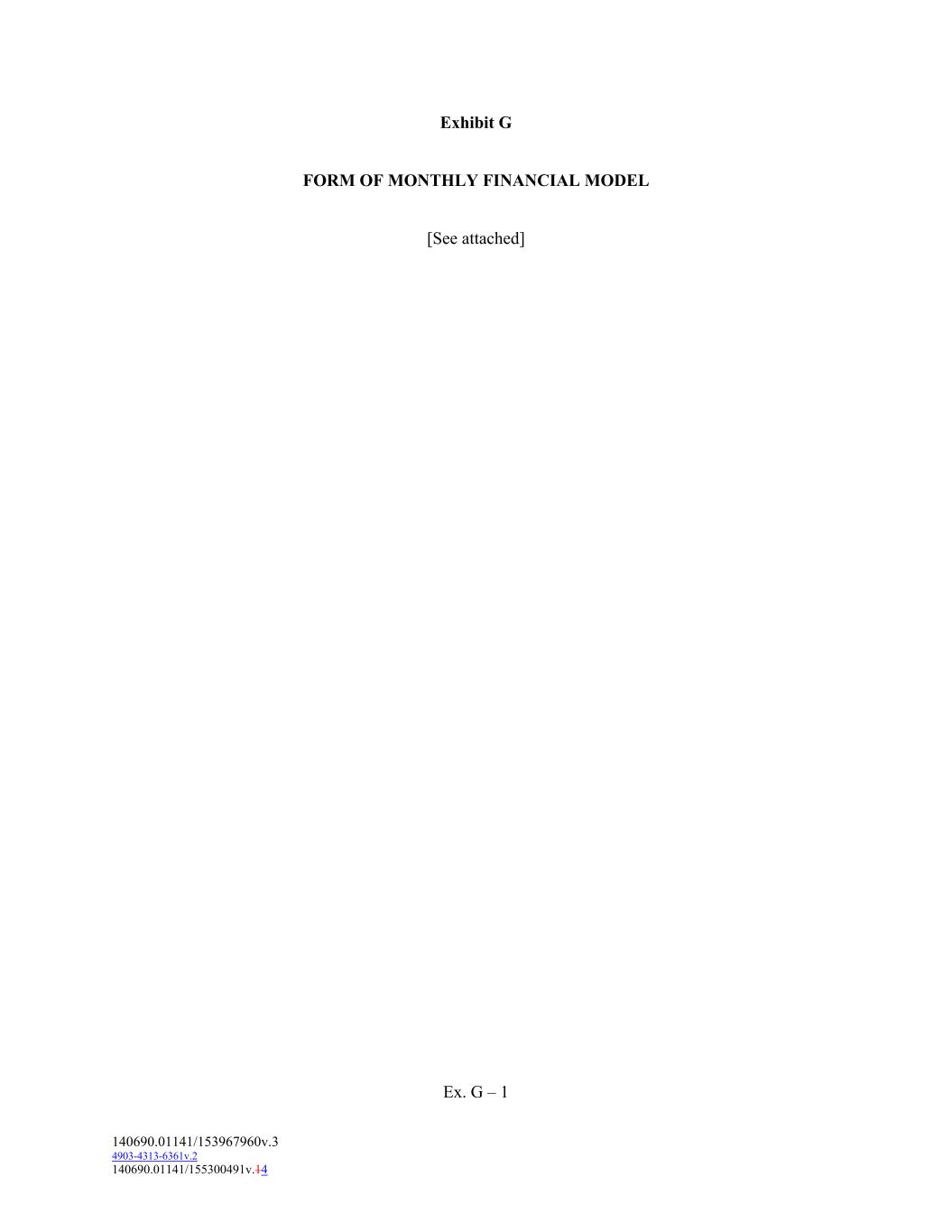 Exhibit G FORM OF MONTHLY FINANCIAL MODEL [See attached] Ex. G – 1 140690.01141/153967960v.3 4903-4313-6361v.2 140690.01141/155300491v.14