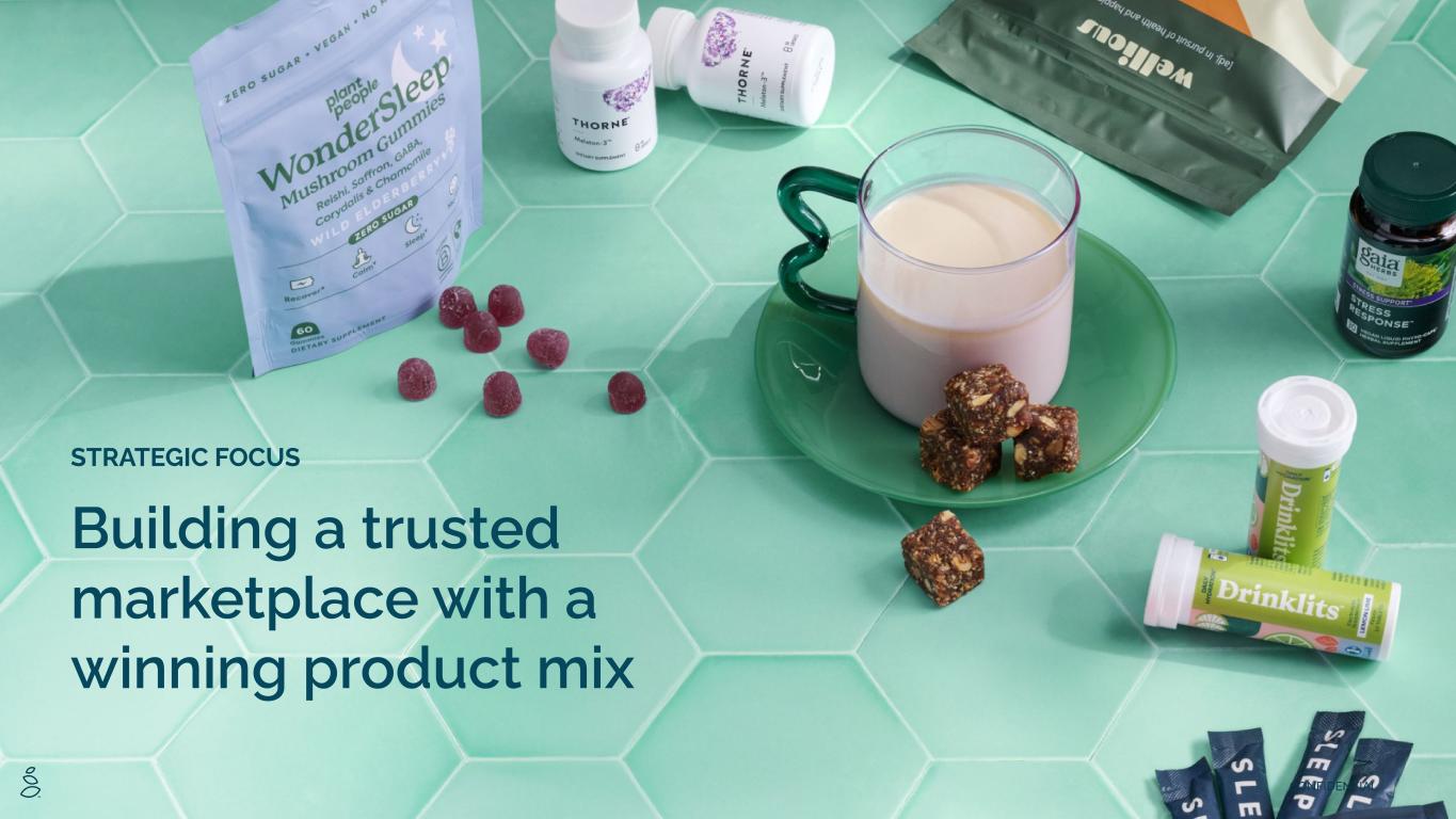 GROW PRODUCT MIX Win in human health and wellness EXPAND NON-VMS Target white space categories to aid the customer journey of building and maintaining a healthy home environment, e.g. clean cooking, water bottles, and other durables VMS GROWTH Improve customer conversion through increased selection, increased marketing exposure, and enhanced content ADVISORY BOARD Experts for credibility and trust Ongoing product vetting, ingredient standards maintenance, and input
